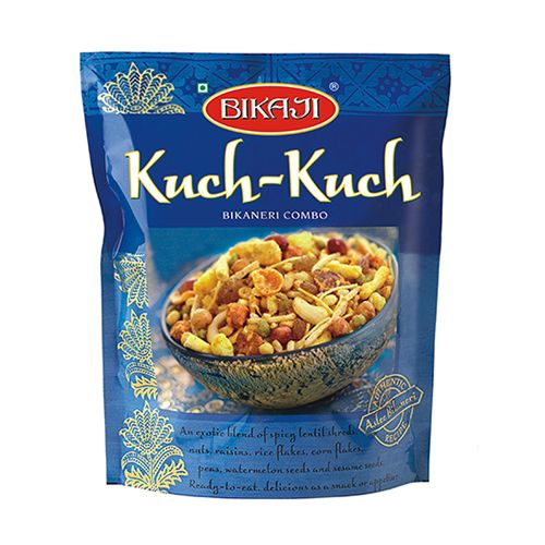 Kuch kuch a exotic blend of spicy lentil shreds, nuts, raisins, rice flakes, corn flakes, peas, watermelon seeds and sesame seeds. Ready to eat, delicious as a snack or appetiser. Gluten free. No added color and preservatives.