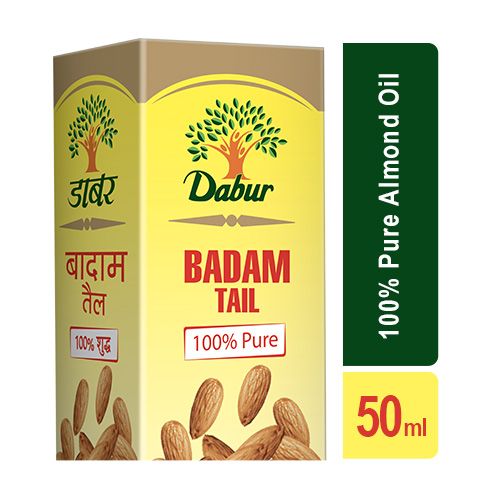 Dabur Badam Tail, 100% Pure Almond Oil has several trusted benefits: 1) Power of Almonds, helps keep brain healthy 2) Strong & Healthy Hair 3) Soft & Beautiful Skin 4) Good for Children 5) Helps relieve constipation 6) Keeps body warm in winter Usage: 5-10ml (1-2 teaspoons) to be taken preferably with 1 Glass of Milk. Can also be applied on scalp and body