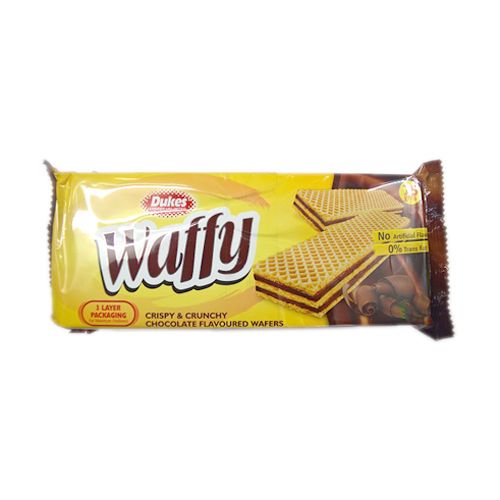 Duke Waffy Chocolate Flavored Wafers are layered by yummy creamy chocolate so that you get a flavor that is whole mix of creamy chocolate and crunchy wafer. It comes with a light delightful aroma and taste to cherish about. It is a wonderful supplement for sunset snacks or through short journeys for moment bite. For chocolate lovers, this is a dream come true! If you are in the mood for something sweet, grab a pack of these wafers. You can eat these wafers for after dinner desserts as well! Buy Dukes Waffy Chocolate Flavoured Wafers online now.