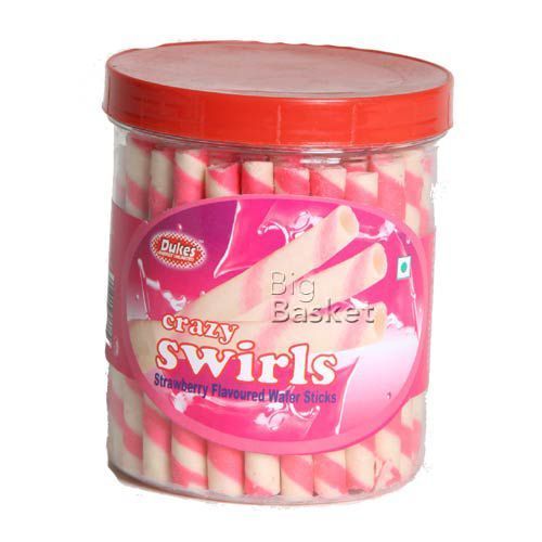 Dukes Crazy Swirls Strawberry Wafers is wealthy and yummy strawberry cream is sandwiched between the layers of wafer. The sugary and natural flavor of strawberries is retained in the cream. Get to tang the best rounding rolls with the light and crusty bites with the Strawberry flavoured cream.