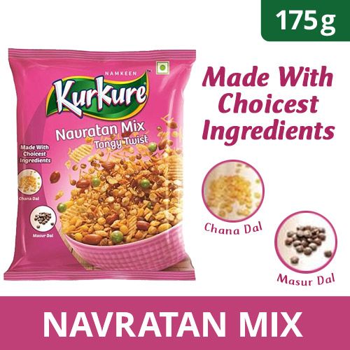 A blend of crunchy pulses with sev,peas and potato chips and spices for a perfect tangy masaledaar snack break. They make perfect tea-time snack and are great when you are in a munchy mood. About the brand-Kurkure is a crunchy, new-age Pack namkeen snack brand which symbolizes light-hearted fun. Embodying Pack the spirit of India, Kurkure has found a home in millions of hearts and minds and enjoys the position of a strong love mark brand in India. Made with trusted kitchen ingredients- 100% vegetarian All the raw materials used in Kurkure comply with The Food Safety & Standards Act & Regulations 2006 and rules that govern the manufacture, distribution and sale of Kurkure.