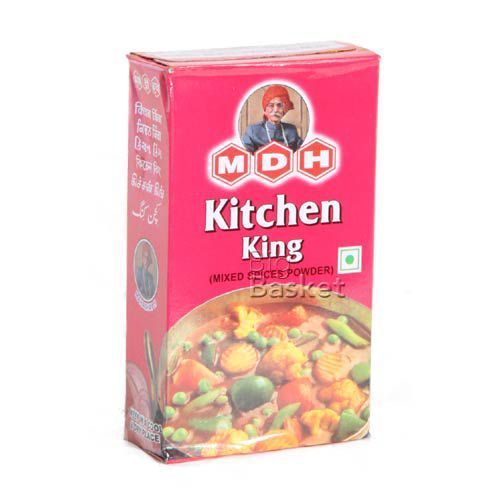 MDH Kitchen King Masala has a combination of coriander, turmeric, cumin, black pepper, chili and other spices. It is dark brown colored, contains a strong spicy taste and should be utilized carefully. Explore the curry experience with this classic mix that provides vegetable curries a lordly flavor and a mild, subdued taste. Being coriander and turmeric based, the mix gives curry a delicious golden hue.