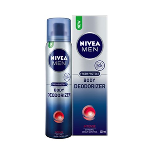NIVEA MEN Body Deodorizer – Intense gives you day-long body odour control with just 1 use. Its innovative gas-free deodorizing formula is concentrated, yet skin friendly and controls the formation of body odour with just one use. It has a woody masculine scent and gives you intense feeling of freshness all day long.