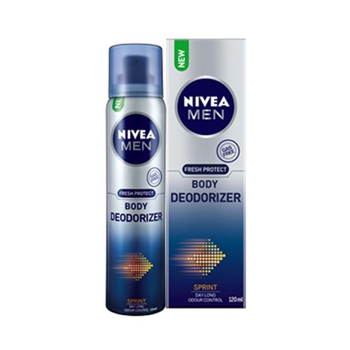 NIVEA MEN Body Deodorizer – Sprint gives you day-long body odour control with just 1 use. Its innovative gas-free deodorizing formula is concentrated, yet skin friendly and controls the formation of body odour with just one use. It has a orietnal masculine scent and gives you a feeling of freshness to sprint through the day.