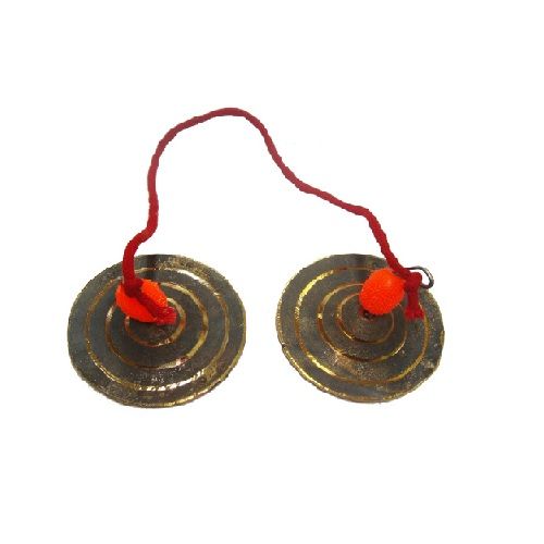 Manjira is musical instrument which is a component of dance music and bhajans. It is known by many names like jhanj tala Challam mondira etc. It is basically a set of small cymbals. It is a very ancient instrument; is traditional made of bronze for the required sound for puja purpose. They produce a rhythmic tinkling sound when struck together. The sounds pitch varies according to their size weight and the material of their construction. A player can also adjust the timbre by varying the point of contact while playing.