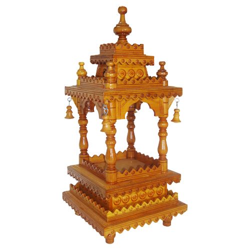 OM Bhakti Puja Mandir (Medium) is beautifully hand carved Yellow Teak wood Mandir.