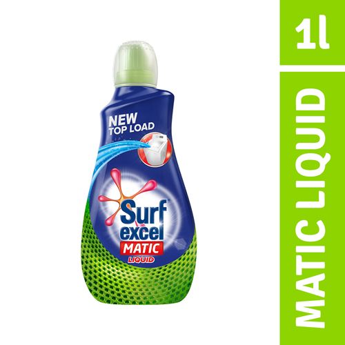 Presenting new Surf Excel Matic Top Load Liquid – a revolutionary liquid detergent for top load washing machines. Surf Excel Matic Liquid is effective in high water level environment (40 liters) of top load washing machines and dissolves completely ensuring it leaves no residue in your machine or your clothes. New Surf excel matic liquid top load is specially made for washing machines and gives you tough stain removal in machines. Being liquid it is best suited for washing machines and ensures a superior laundry experience and offers the following benefits – FASTER STAIN REMOVAL – New Surf Excel Matic liquid with a powerful cleaning technology penetrates stains faster and removes tough stains in machines itself. EASY & BETTER DISSOLUTION – Being liquid, it dissolves quickly in high water level environment of washing machines, reaches stains effortlessly and leaves no residue on clothes or in machines. SUPERIOR FRAGRANCE – It ensures that your clothes not only look fresh but also smell fresh while being safe on your hands. COLOUR CARE – It removes tough stains in machines but retains the original color of the fabric. MACHINE CARE – Bring liquid it leaves no residue, causing no scaling and produces the right amount of foam. Now remove tough stains in the machine in 3 easy steps – • Pour some liquid on the tough stain. • Rub the stain with the revolutionary Stain Scrubber cap. • Pour the remaining liquid in the machine. The 7-layer deep penetration formula of Matic liquid works in partnership with the machine to give tough stain removal in the machine itself. Hurry up buy Surf Excel Matic Washing Machine Laundry Detergent Top Load 1 l, right here!