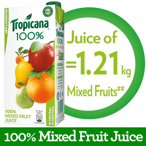 Tropicana 100% Mixed fruit juice has no added sugar for a healthy you. With no added preservatives, color or artificial flavouring, Tropicana puts the good in morning. Add a glass of Tropicana 100% to your breakfast and give your day a great start. Its 9 nutrients revitalize your body and awaken your senses. Be alive, all day long.