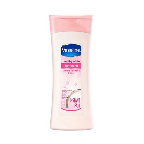 Vaseline brings you the Healthy White Lightening Body Lotion for long-lasting, instant fairness. Its advanced formula consists of triple sunscreens, skin illuminating minerals, and Vitamin B3. The triple sunscreens prevent your skin from the harsh UV sun rays and eliminate tan damage. Vitamin B3 nourishes your skin cells and gives you healthy, fresh skin. The skin illuminating minerals reduce the dirt and grime from your deepest skin cells lending you instant and long-lasting fairness. This body lotion gives you a natural glow with soft and supple skin. Use the Vaseline Healthy White Lightening Body Lotion every day for smooth, bright, and radiant looking skin.